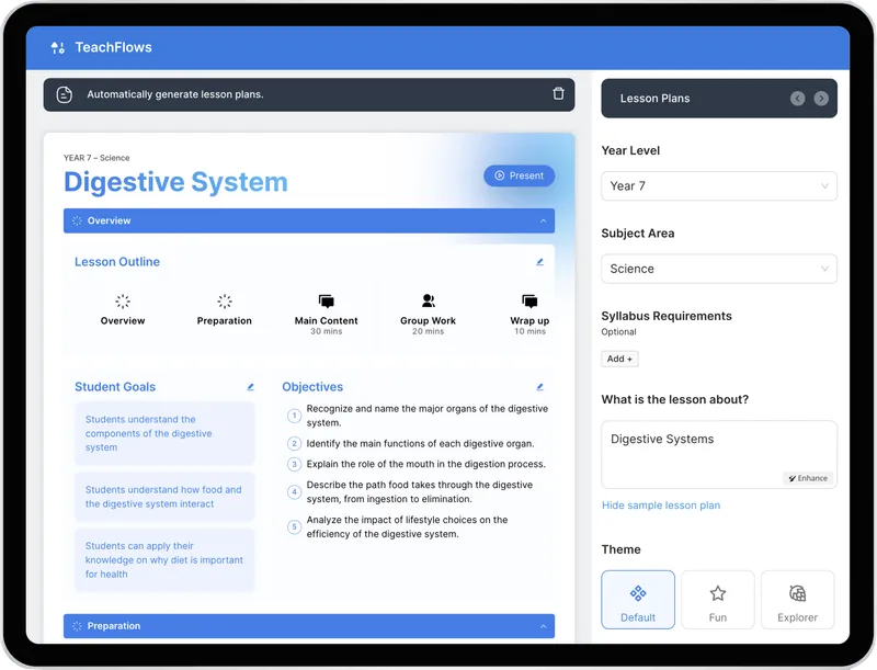 Want to spend less time preparing and more time teaching? Explore TeachFlows’ AI tools or get in touch to see how we can support your school.