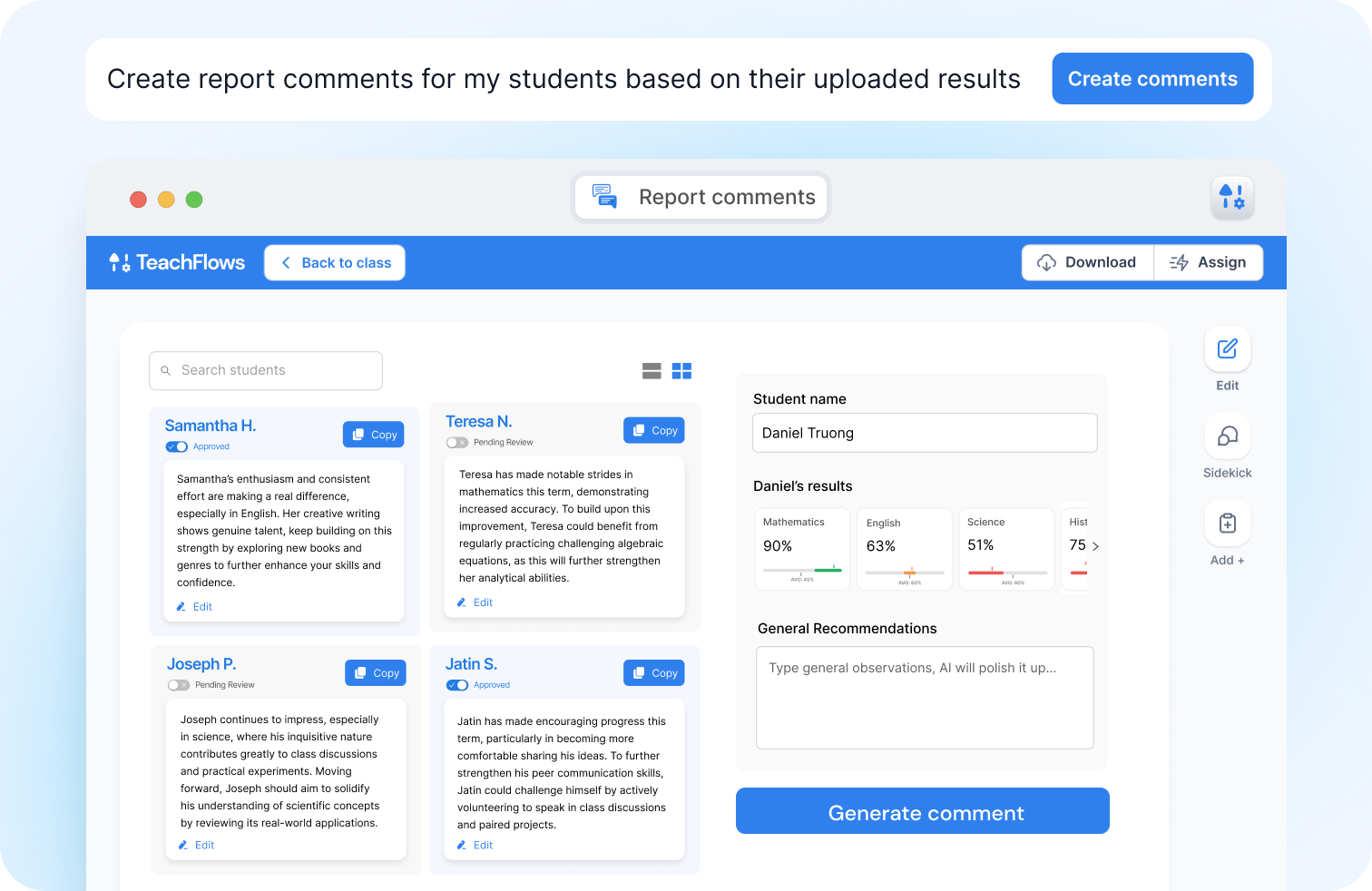 Whether you're a small school or a large district, our platform is tailored to meet your unique needs and goals. Unlock the power of AI in education with TeachFlows – with a suite of tools designed to enhance teaching, streamline administrative tasks, and personalize learning experiences.