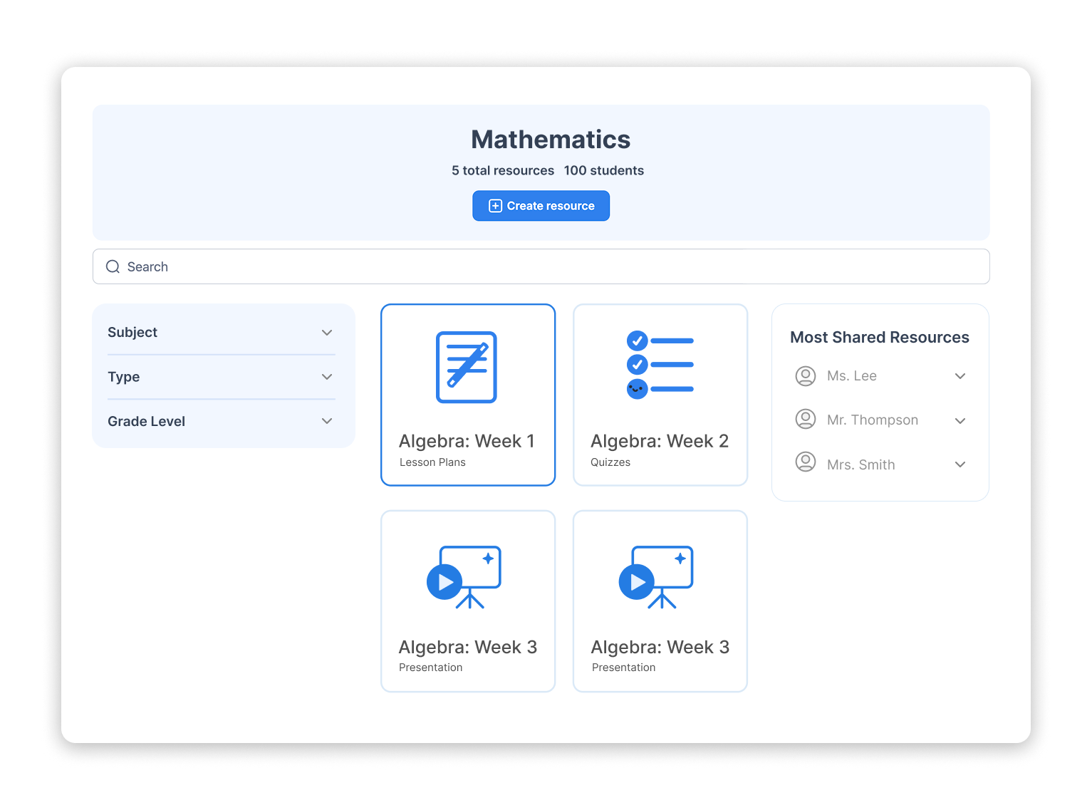 One library, every classroom: Ensure teachers have access to the same high-quality lesson plans, quizzes, and presentations.