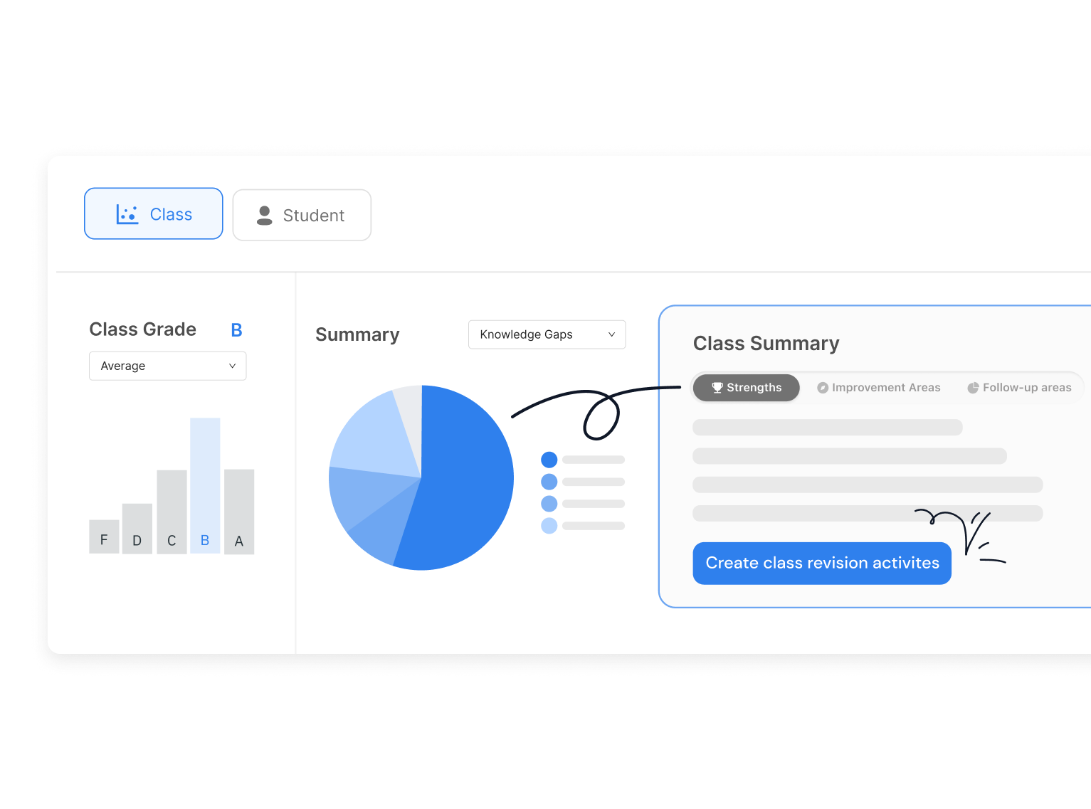 Get clear AI-powered insights that help adapt future lessons and create revision activities for each students in one click.